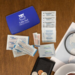 - Basic first aid kit in snap closure carry case